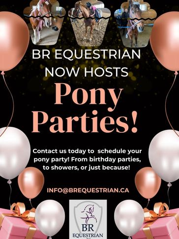 BR Equestrian hosts pony parties! Whether you are looking for a birthday party, shower, or a party just because we have you covered! Our parties are 2 hours long, which include horse and pony rides for up to 6 participants. Contact us today with your specific needs and we would be happy to find a package that works for you!